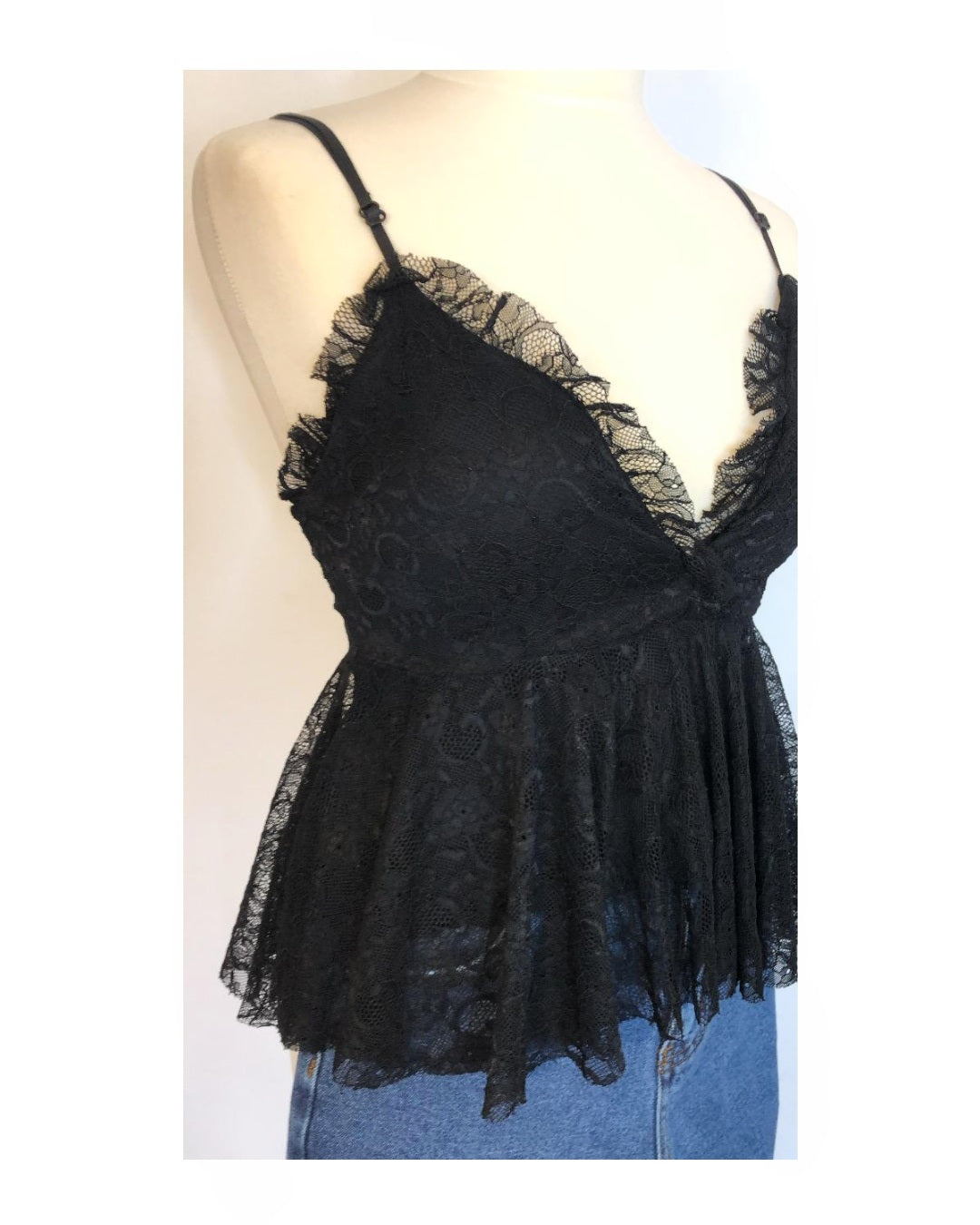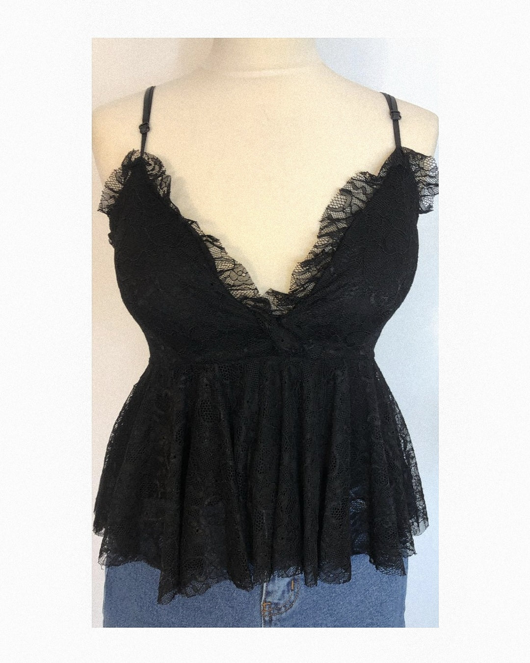 Sottogiacca modello a canotta con spallina fina e regolabile, scollo a V completamente in pizzo con peplo...da WOOOW!